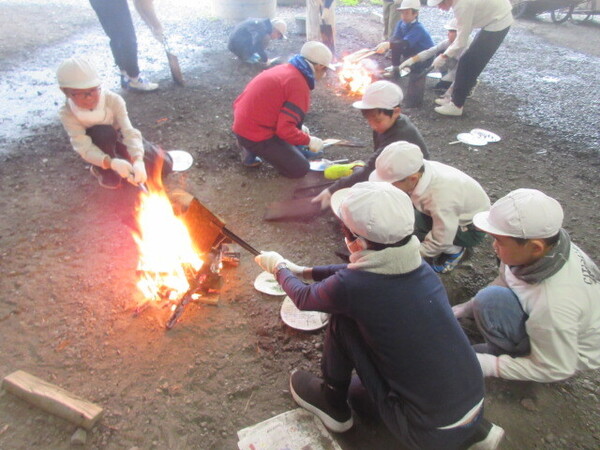 という作業手順でしたが、子どもたちは、はじめの作業、薪を組んで燃やすことに、苦労していました。