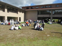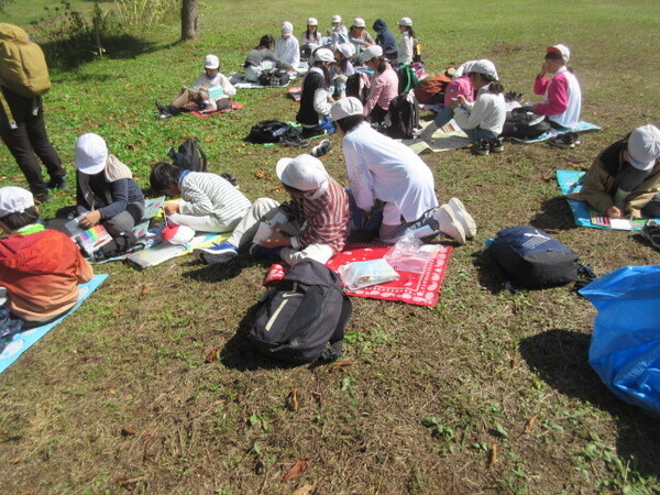 ・朝食を食べ、退所点検を終えた後は、緑の体験活動を行いました。