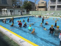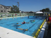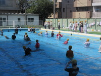 ・水着に加えて、いつも着ている洋服を着用し、水に入ってみると・・・その動きにくさに子どもたちは、びっくりしていました。