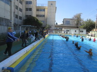 ・本日、6年生の子どもたちが、着衣泳を行いました。