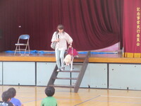 ・最後に、盲導犬のジェシーと一緒に階段をのぼったり、おりたりの実演をしてくれました。