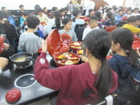 ・東照宮の見学を終えた子どもたちは、修学旅行最後の食事場所に移動し、昼食をとりました。