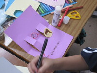・具体的には、来週に迫った音楽会の招待状を作成するという活動でしたが、今回のポイントは、飛び出す仕組みを取り入れることでした。