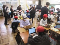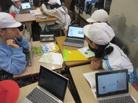 ・授業の前半は、調べ学習が中心でしたが、同じテーマの友達と教科書、本、タブレットPC等を活用しながら、進めていきました。