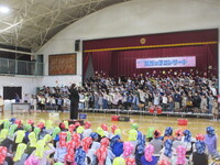 ・まず、前半の1・2校時に1・2・3年生が、体育館で演奏を行いました。