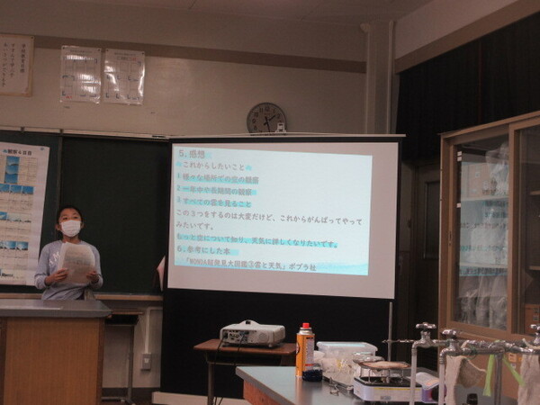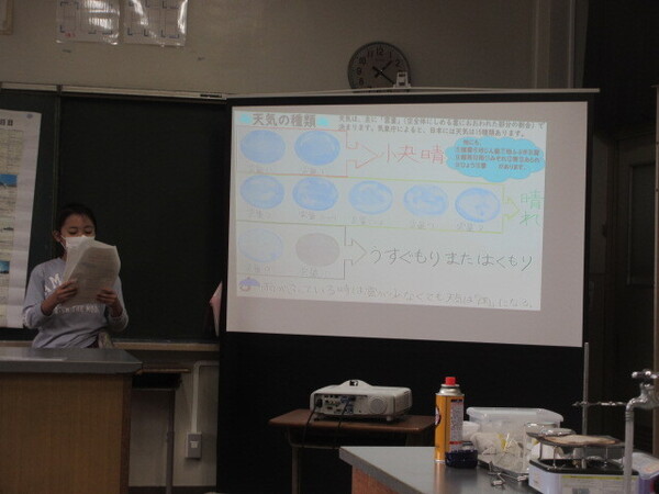 ・本日の昼休み、明日の本番の予行練習ということで、理科室で発表を聞かせてくれました。