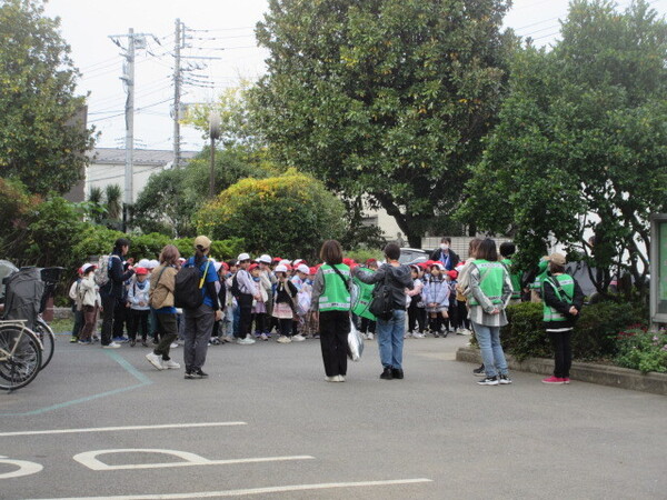 ・別所沼公園までは、1・2年生のペアで手をつなぎ、歩いて行きました。