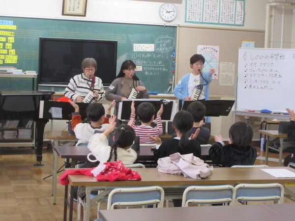 ・先日は、「音楽を楽しもう」ということで、3名の外部講師の方をお呼びして、鍵盤ハーモニカやリコーダーで演奏をしていました。