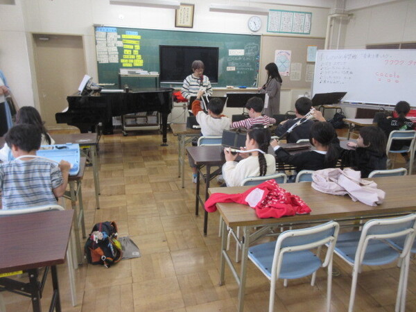 ・後半は、その講師の先生のご指導の下、子どもたちも一緒になって演奏をしていましたが、みんなニコニコと笑顔で心から音楽を楽しんでいる様子が伝わってきました。