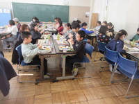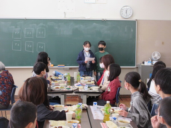 ・5年生の計画委員会の子どもたちと一緒に給食を食べていただきました。