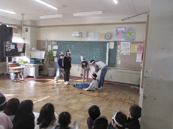 ・最近、朝自習の時間に教室をまわっていると5年生の子どもたちが、一生懸命、英語劇の練習をしている姿をよく見かけます。