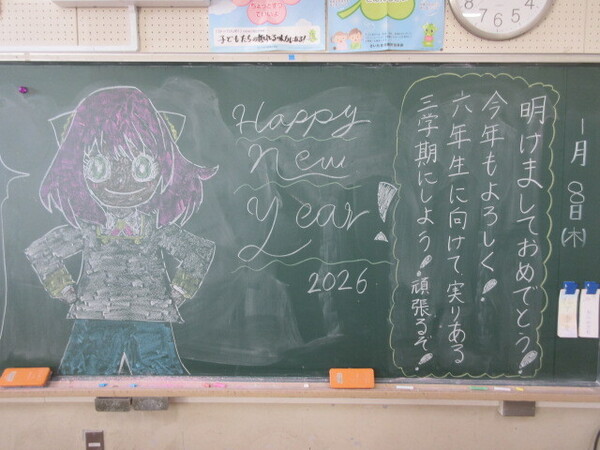 ・その後、各教室をまわりましたが、どの教室でも子どもたちは、元気いっぱいに活動していて、冬休み中静まり返っていた学校に一気に活気が戻ってきたことを実感しました。