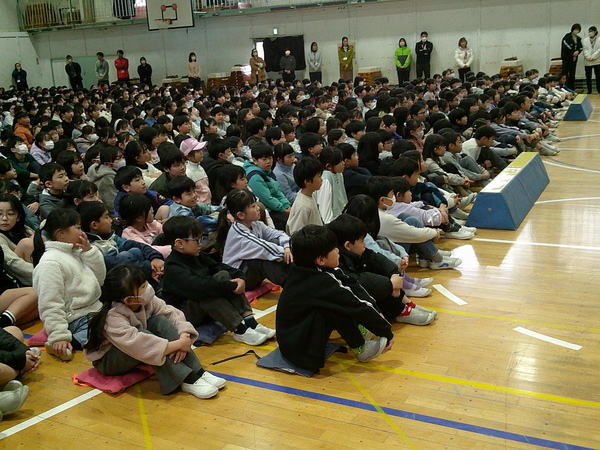 ・約7分間の演奏でしたが、会場の3~6年生の子どもたちは、音色の美しさに聴き入っていました。
