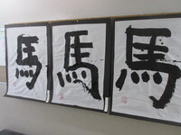 ・また、東校舎3階の廊下には、先日、しののめ希望館で子どもたちが書いた大文字「馬」の作品も掲示してありますので、こちらもあわせてご覧いただければと思います。
