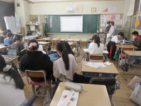 ・また、1年生や6年生の教室では、公開授業が行われ、図工や算数の授業を教職員同士で参観しました。