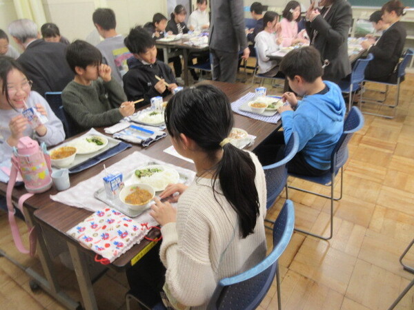 ・学校運営協議会の後、地域の方々を招いた学校給食を行いました。
