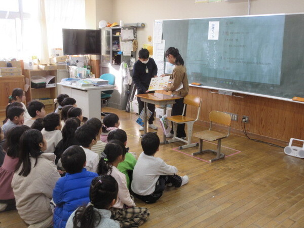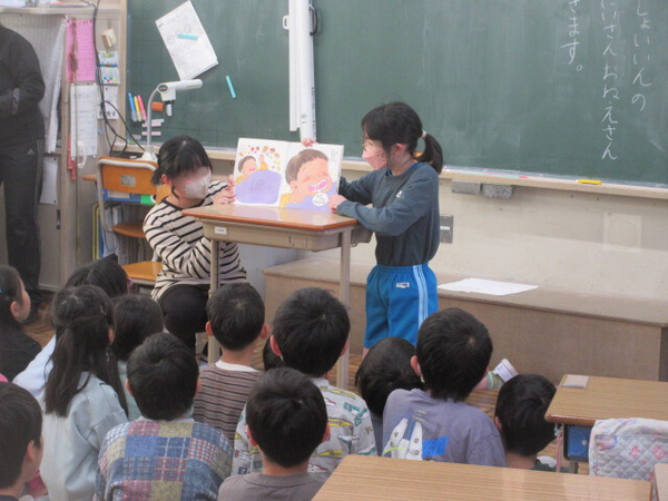 ・先週の金曜日の朝の読書タイムでは、図書委員会の子どもたちが、低学年の教室に行き、読み聞かせを行ってくれました。