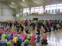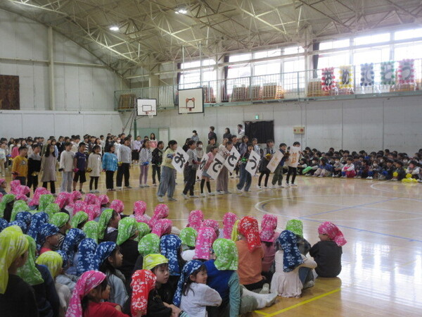 ・まず、前半は1・2・3年生が集まり、6年生に感謝の気持ちを伝えました。