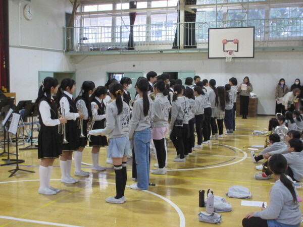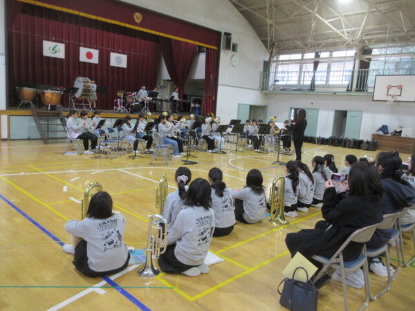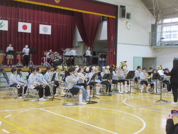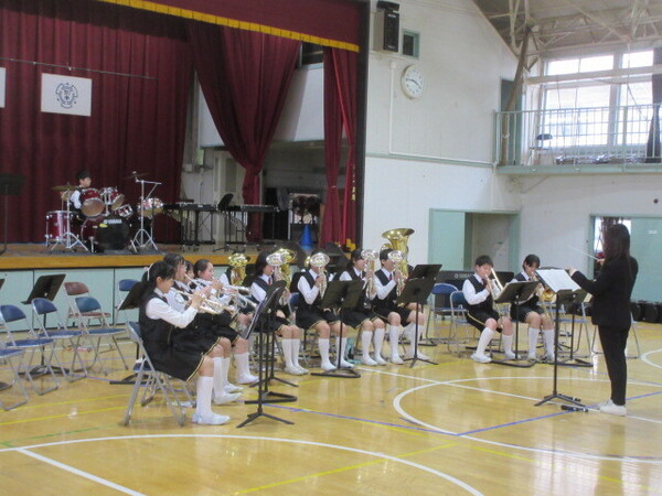 ・会場には、多くの保護者の皆さん、教職員が集まり、金管バンドの素晴らしい演奏に聴き入っていました。