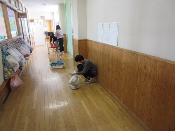 ・具体的には、各教室の配膳台やサーキュレーター、水道場の清掃などです。