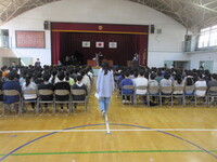 ・今日は、卒業証書授与のとき、自分の座席からどのような動きをして、ステージに立ち、証書をもらうのか、もらったあとは、どのような動線で座席まで戻るのかなど、細かい動きの確認をしていました。