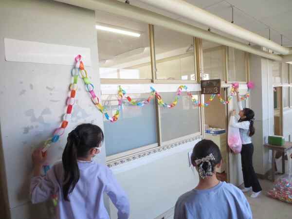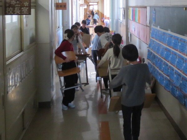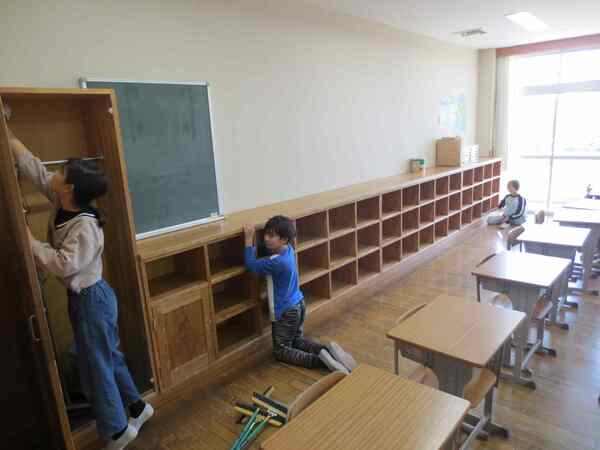 机やいす、荷物を運んだり、掃除をしたり、新1年生の教室の装飾をしたり、学校のために汗を流しました。