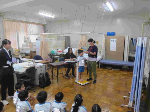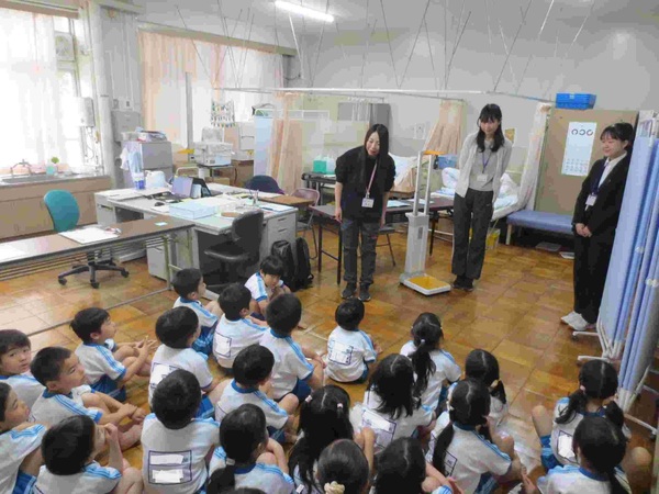 養護教諭の清水先生と三ツ木先生、教育実習生の川上先生が迎えてくれます。