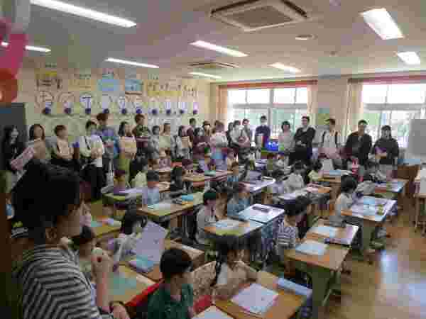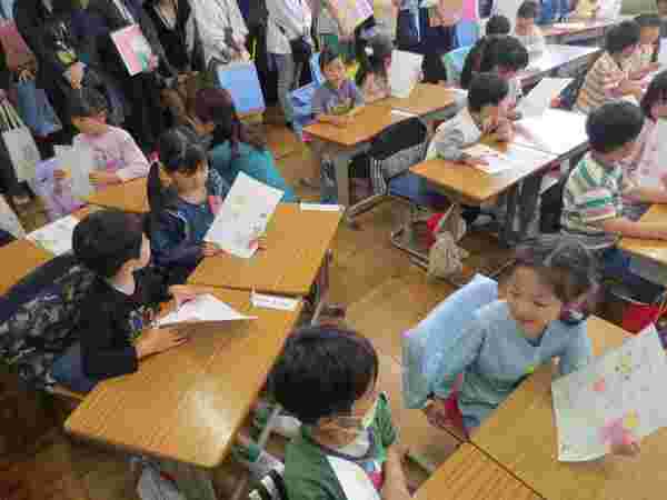 授業参観は「ひらがな『し』」と「自己紹介」の授業です。