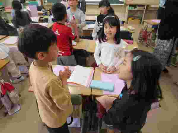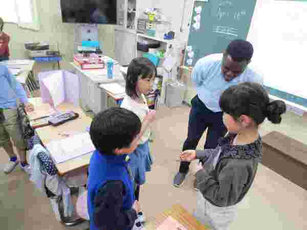 3年3組の教室に入ると、G・S(グローバル・スタディ)の授業です。