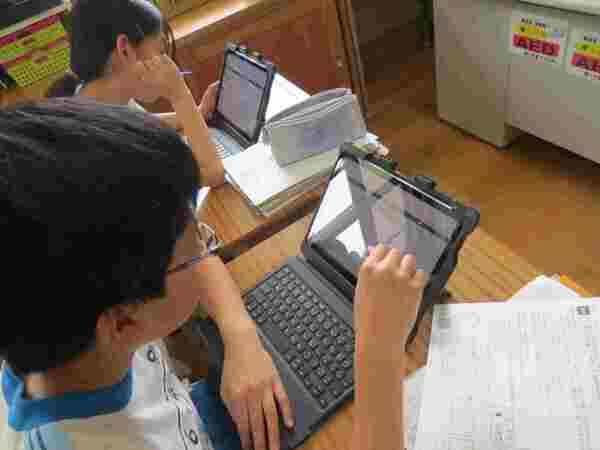教科に関する調査は紙の問題用紙、解答用紙でしたが、今日はタブレットを使ってオンライン調査です。